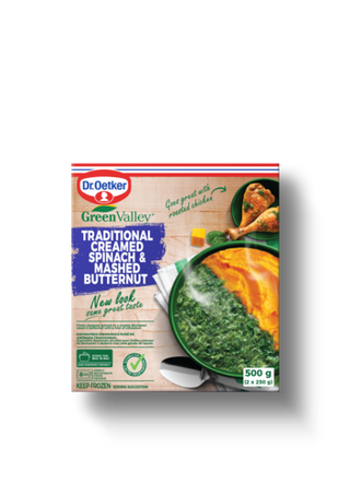 Dr. Oetker Green Valley® Fresh from the valley, straight to you. Green Valley vegetables offer a variety of heat-and-eat solutions to complete any meal. Our vegetables are carefully prepared with tasty herbs and spices for a delicious homemade taste without the mess, fuss and waste of making your own. Green Valley. Tastiness has never been this easy.